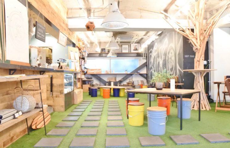 まず店内に入って驚くのが広々とした空間の中に敷き詰められたグリーンの芝生。