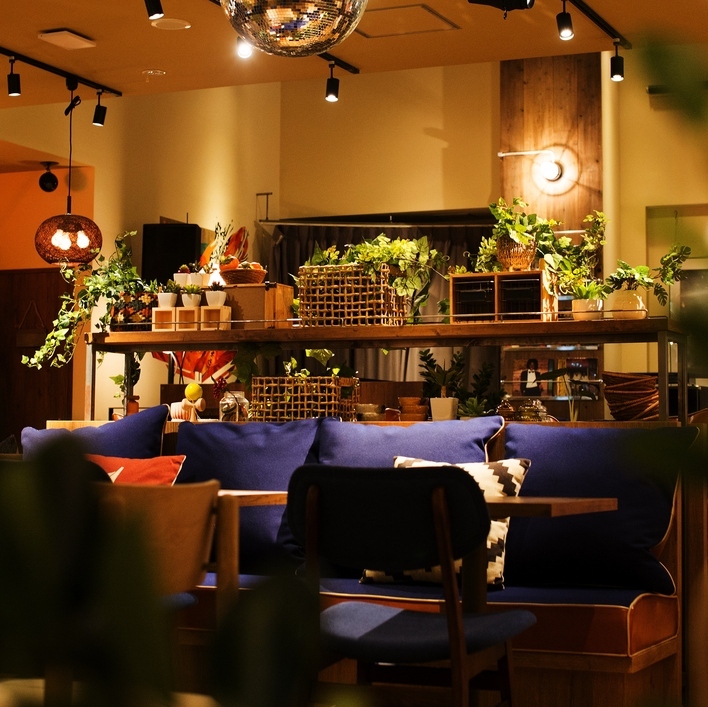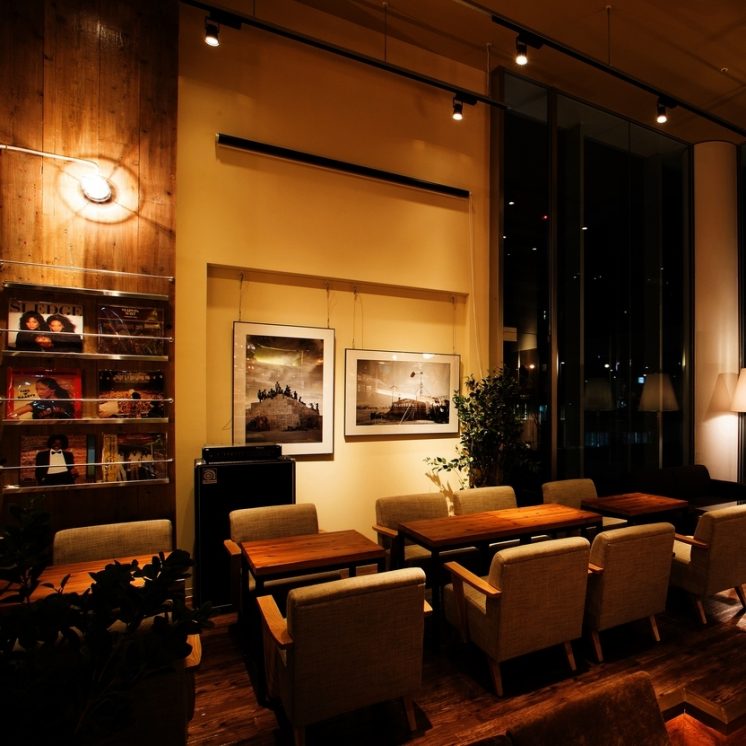 天神駅直結という抜群の立地。和を軸とした料理と、音楽を気軽に楽しめるエンターテインメントCAFE&DINING! 店内はゆったりソファ席を中心に、開放的なガラスウインドウから天神の夜景を眺望できる! 明るいウッド調の店内は、少し落ち着いた雰囲気の結婚式二次会やパーティーにぴったり!! 皆様のお越しをお待ちしております!