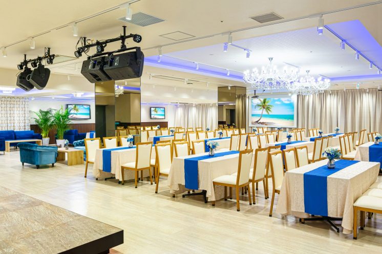 ビッグターミナル横浜駅から徒歩4-5分の好立地にあるバリ風リゾート空間。広さ218㎡、天井高2.9mの開放的な会場で、着席最大120名、立食最大250名まで対応可能。2フロア貸切で最大350名様まで!150インチの大型スクリーン、音響・照明設備、大型ステージを完備し、表彰式や会議、懇親会、結婚式二次会など多彩なイベントに対応!ダーツを設置も行っており、パーティーをさらに盛り上げます♪