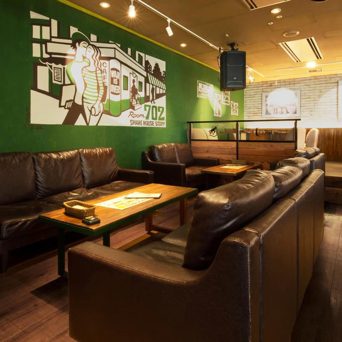 なんば駅直結という抜群の立地!店内には住人の様々な顔があり、ウォールアートやフォトアートなど個性溢れる内装になっています。定期的にLIVEを開催し、音楽を楽しみながらお食事できるLIVEレストランにも様変わりするので、演奏をするパーティーにもピッタリ。個性溢れるシェアハウス『#702 CAFE&DINER』に是非おこしください。