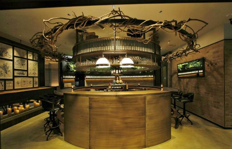 森を思わせる爽やかな『白州』の香りと、香りの掛けあわせを楽しむ骨太の中華エスニック。五感に響く新たな味わいを白州の森をテーマとした店内で。開放的なテラスからは豊かな緑と、丸の内の夜景の両方を眺めることができる。